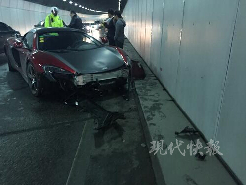 核心提示:最近南京發(fā)生多起豪車事故,昨天下午4點(diǎn)多,在鼓樓隧道內(nèi),一輛價(jià)值400來萬的邁凱倫跑車又撞上了路牙。