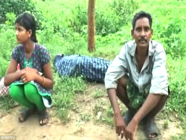 圖為志愿者叫來幫忙的車運走了Dana Majhi的妻子。