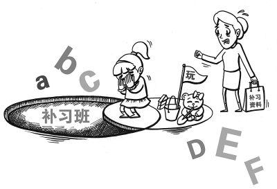 劉先生有一位同事,他的孩子從上幼兒園中班就開始報英語學習班,如今已經(jīng)上小學二年級了。劉先生聽同事說,自從孩子上了課外班,英語的聽說能力明顯要好得多,不僅可以開口說英語,對英語學習的興趣也很濃厚。看到同事孩子身上的變化,劉先生也動了心思。一開始,家里的老人極力反對。“老人的思維還停留在過去的教育理念上,覺得課堂上講的只要認真學就可以了,不必要再給孩子增加負擔,但實際情況卻不是那么回事。”在跟其他家長聊天后,劉先生發(fā)現(xiàn),這種寬松的教育理念已經(jīng)“過時”,別人家的孩子不但報了學習班,而且一報就是好幾個。