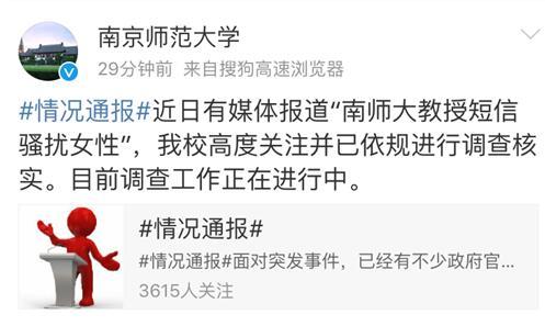 網友舉報南京師范大學教授性騷擾 短信不堪入目