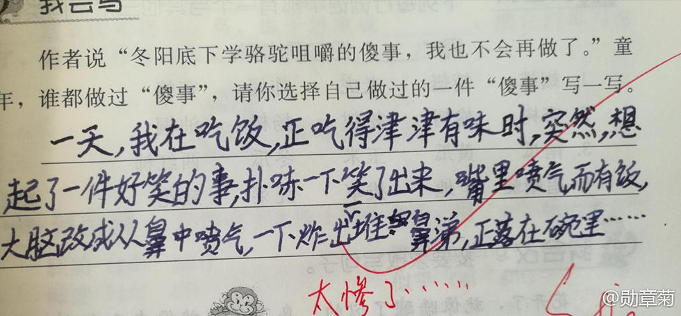 近日,網友@勛章菊曬出一組小學生作業,同學們寫下自己小時候做過的傻事,雖然每個孩子的風格不同,但相同的是都非常可愛,讓人不禁笑出聲來。據了解,這個網友是一名小學語文老師,這次的題目出自小學五年級的練習冊。