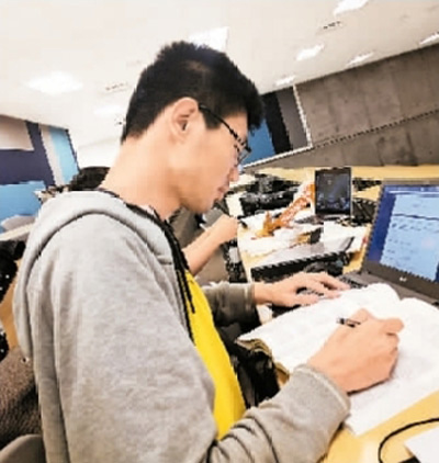 姚澤平出國是為了學習知識,他給自己制訂了總的規劃和時間表。圖為他在自習室專注地學習。