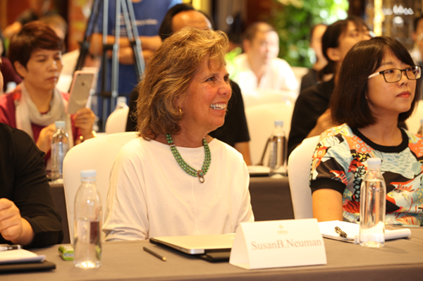 為了讓孩子享受正統的國際化學前教育,悅寶園(中國)特別邀請紐約大學教育學院教授、小布什政府教育部助理部長Susan B.Neuman擔任幼兒園首席顧問。發布會上,Neuman 教授對悅寶園的教育理念做出了充分肯定并為大家分析了美式課程的優勢。悅寶園國際幼兒園沿襲Romp n’ Roll的美式教育理念,以美國STEAM課程(美國素養課程)與國際雙語教育為支點,結合全美主流的幼兒核心課程WOW(world of words),持續研究最適合中國0-8歲兒童的ACE課程。ACE課程通過體能、社交、語言、音樂、實驗、操作、舞蹈、繪畫、手工、閱讀等多樣的形式,全面發展兒童的語言交流能力、邏輯思維能力、獨立思考能力,團隊合作能力、卓越的領導力和非凡的創造力。會上,悅寶園中國區教研總監蔣海燕老師也為大家細致講解了幼兒園的課程設置,讓大家了解悅寶園國際化學前教育的優勢。