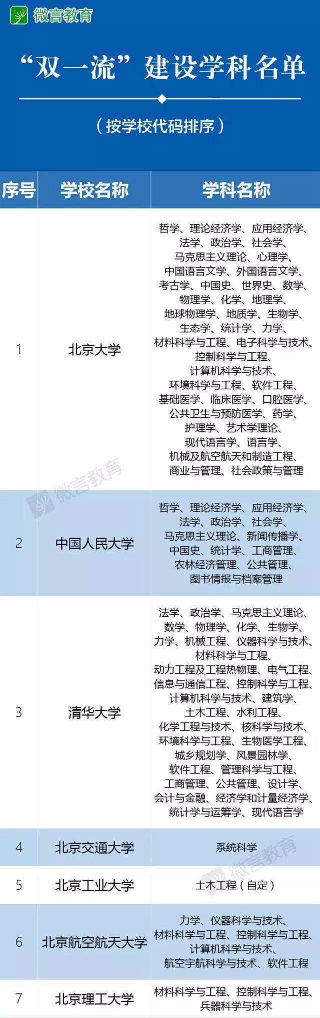 據(jù)教育部官方微信“微言教育”消息,教育部、財(cái)政部、國(guó)家發(fā)展改革委日前印發(fā)《關(guān)于公布世界一流大學(xué)和一流學(xué)科建設(shè)高校及建設(shè)學(xué)科名單的通知》,公布世界一流大學(xué)和一流學(xué)科(簡(jiǎn)稱“雙一流”)建設(shè)高校及建設(shè)學(xué)科名單。