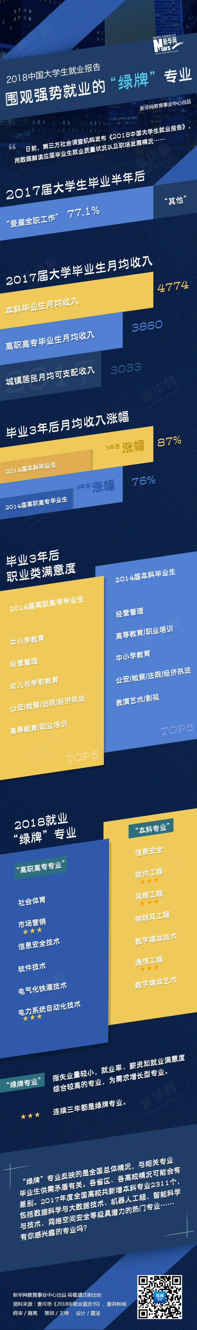 今天,在北京發布的《就業藍皮書:2018年中國大學生就業報告》顯示,2017屆中國大學生畢業半年后的就業率為91.9%,高職高專就業率首次超過本科。另外,軟件工程、網絡工程等連續三屆保持較高就業率。