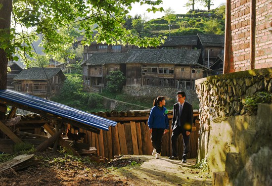 陳立群(右)在臺江縣臺盤鄉南莊村家訪途中與學生交流(4月16日攝)。他是浙江名牌高中校長,退休后,拖著病體,獨自來偏遠的貴州大山里義務支教。不僅帶領一所“差校”走上正軌,更改變一方教育觀念。他就是浙江省杭州市學軍中學原校長、貴州黔東南州臺江縣民族中學校長——陳立群。他的故事,被網民譽為中國版“放牛班的春天”。新華社記者 楊文斌/攝