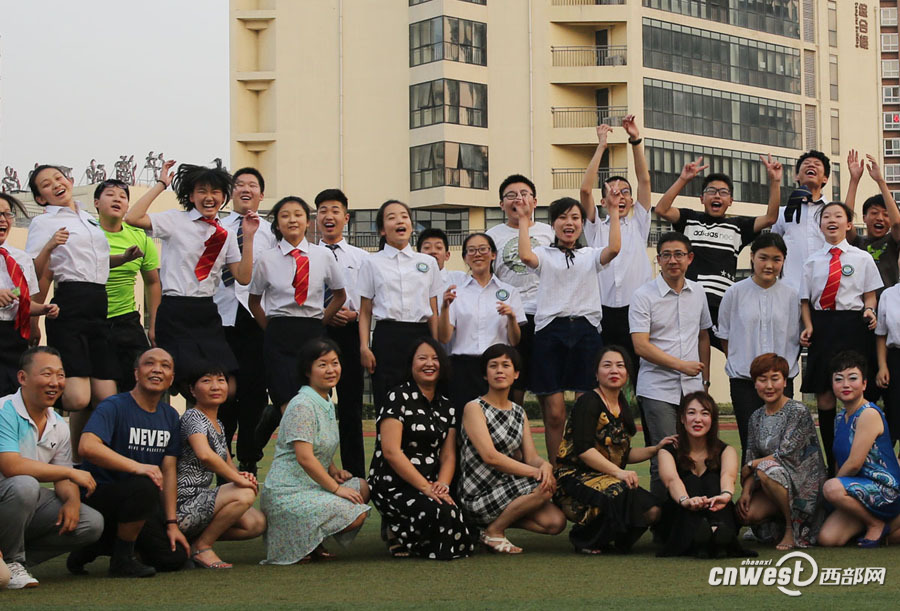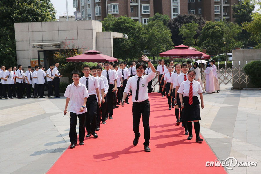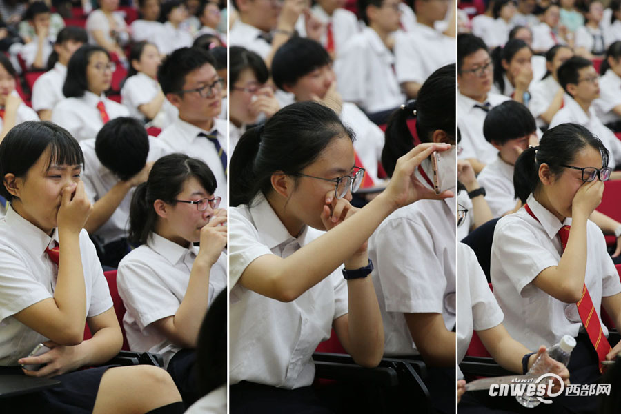 西安一中學舉行初中畢業(yè)典禮 學生走紅毯哭成淚人