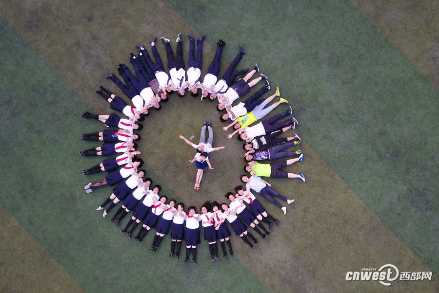 •   3年來班主任付出太多太多,就要離開學校了,學生們讓班主任坐在圓心位置航拍紀念照。