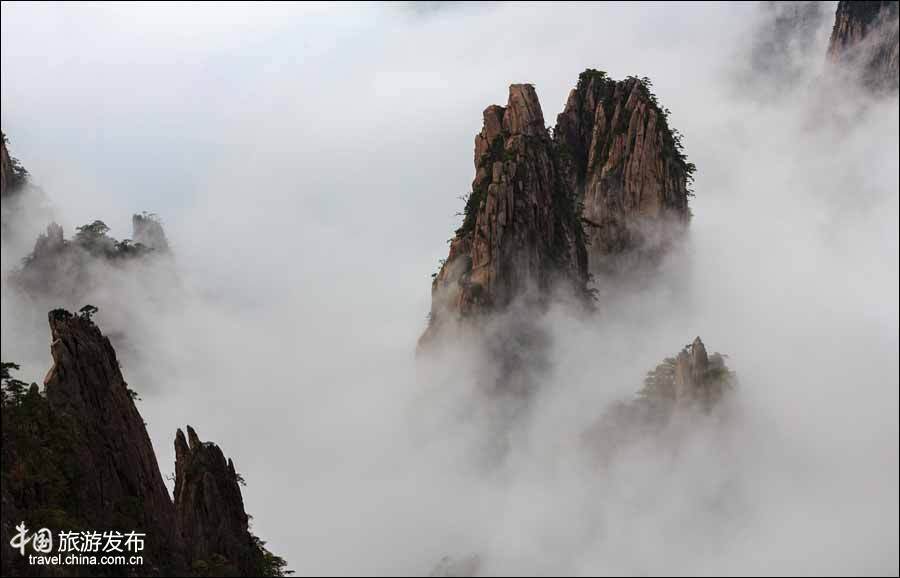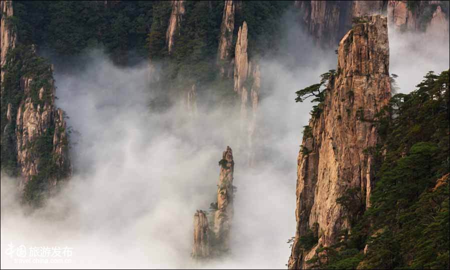 【點睛】“雨后黃山更奇絕”,這是清初詩壇盟主錢謙益在游覽黃山后興之所至。10月30日,綿綿的秋雨過后,黃山西海景區云霧彌漫,樹林中騰起的層層云霧,環繞著青山黛色,飄渺在山峰間,時而云遮霧罩,時而青煙縹緲,時而四方慢云,時而暗流涌動,峰在云中、石在樹中、人在畫中的畫卷緩緩鋪展。