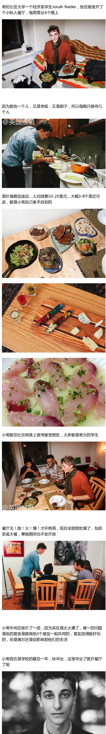 哥大一個學生在學校宿舍里開了一個小餐廳,生意特別火爆,現在連圣誕檔都預定滿了。