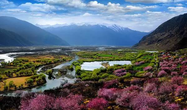 每到春季,林芝群花爛漫,雪峰陣列,藍天白云、冰川襯森林、碧湖映雪山,景色宜人至極。