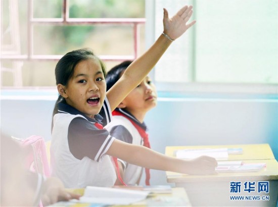 8月31日,貴州省劍河縣城關第二小學一名二年級學生在新學期課堂上舉手回答問題。新學期,每個學生感受都不同,有初來乍到的新奇,有早起上課的困倦,有與小伙伴重逢的喜悅,也有與家人短暫離別的不舍……開學的表情,豐富多彩。新華社發(楊文斌攝)