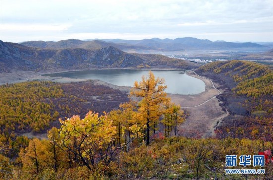 這是10月7日在內蒙古扎蘭屯國家級風景名勝區臥牛天池拍攝的深秋景色。新華社發(王澤蔚 攝)
