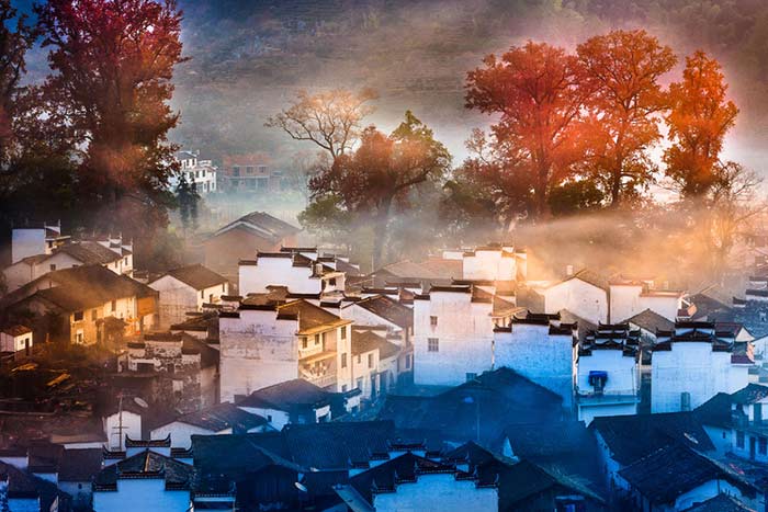 婺源,古徽州六縣之一,享有"中國最美的農(nóng)村"之美譽(yù)。秋天山頂上、山溝里、滿山紅葉競相爭艷,似紅霞繚繞,灰白的民居與楓林交相輝映,形成了鄉(xiāng)村別樣的風(fēng)光。