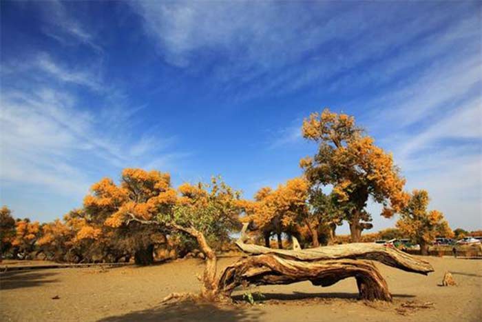 額濟(jì)納是世界上僅存的三大胡楊林區(qū)之一,且保護(hù)最為完整。在額濟(jì)納,有很多樹齡高達(dá)數(shù)百年的胡楊,它們歷經(jīng)歲月的洗禮卻仍然枝繁葉茂,領(lǐng)盡大漠瀚海風(fēng)騷,堪稱大自然的奇跡。在黑水河和白水河匯聚而成的額濟(jì)納河邊,分布著八道橋,橋邊胡楊環(huán)抱,景色各異,行走其間,就像穿行于一條異常瑰麗的金色隧道之中。