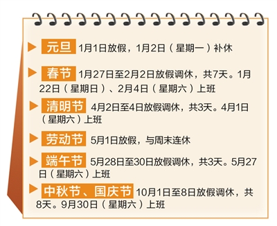 2017年節假日放假安排出爐 國慶中秋連休8天