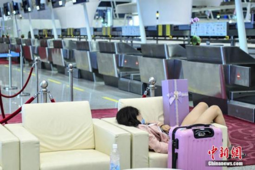 資料圖:8月1日,深圳機(jī)場,一名旅客因航班取消在出發(fā)大廳內(nèi)休息。中新社記者 陳驥旻 攝