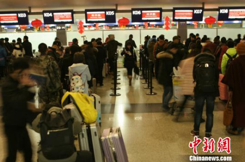 資料圖:1月25日,大批旅客在南京祿口國際機(jī)場辦理登機(jī)手續(xù)。中新社記者 泱波 攝