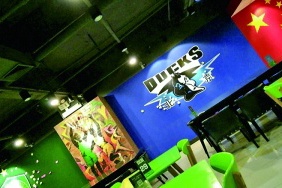 沒溜兒是以國安球迷餐廳為主題的串吧,一進(jìn)門就能看見那個標(biāo)志性的足球門,還是由這里的球迷老板親手做的。許多北京的球迷有事沒事都會來這聚聚,聊天侃球。擼串本來就很歡樂,來這兒吃飯的又是球迷居多,更是把沒溜兒的精神貫徹到了整個氣氛中,經(jīng)常是幾桌并不認(rèn)識的客人喝著喝著大家都成為了朋友。店里有兩臺投影,還專門留出了兩面空白墻面為看球而設(shè)計。尤其在比賽日,沒溜兒串吧更是變成了國安球迷的第二現(xiàn)場,滿屋子的球迷一起唱隊歌,為自己的主隊吶喊的場面十分盛大。