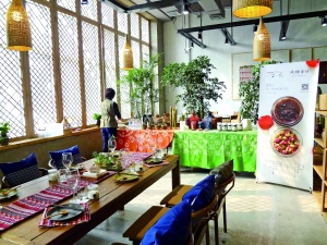 一坐一忘的店名來源于麗江束河古鎮(zhèn)的一家客棧,這里是一家麗江主題的餐廳。餐廳創(chuàng)始人李剛畢業(yè)于解放軍藝術(shù)學(xué)院國畫系,經(jīng)歷過八年的軍人生涯,退伍后留在北京,兜兜轉(zhuǎn)轉(zhuǎn)后找到了藝術(shù)最好的傳達(dá)方式,創(chuàng)辦了一坐一忘,把他念念不忘的云南帶到了各個城市。灰磚墻、木頭桌椅、報紙糊的天花板,活脫脫勾勒出納西風(fēng)情,鋪開了一幅麗江的美麗畫卷。店里擺設(shè)著麗江當(dāng)?shù)刭I來的工藝品,就連小小的牙簽盒、煙灰缸都讓人愛不釋手。這里的玉龍白露茶和傣家自釀的米酒是正宗的納西風(fēng)味。清新脫俗的音樂和笑容樸素的納西姑娘也能讓人忘卻城市的喧囂。
