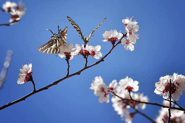 4月的新疆伊吾,春意盎然,葦子峽鄉(xiāng)萬棵遍布河谷的野山杏花競(jìng)相綻放,引來彩蝶翩翩起舞,交映成趣。春光旖旎,“蝴蝶谷”頓時(shí)成為游人踏青賞花、休憩放松的樂園。引得中外游客嘖嘖點(diǎn)贊,紛紛拍照留念。