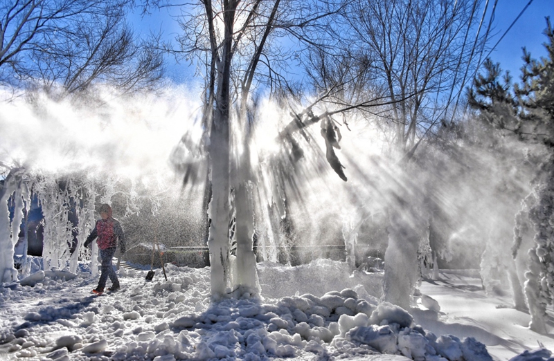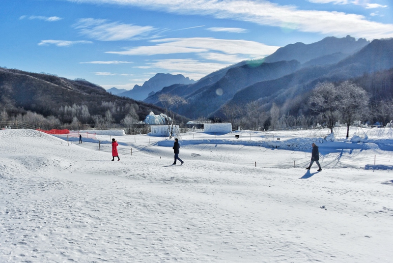1月14日,玉渡山風景區利用不凍山泉制作的冰雪景觀。 近日,眾多游客來到北京市延慶區玉渡山冰雪世界體驗冰雪游樂活動。延慶區玉渡山位于燕山山脈海坨山腳下,玉渡山風景區利用氣溫低、高山降雪和不凍山泉等自然優勢打造了人工冰瀑、冰川等冰雪景觀,以及高山滑冰滑雪、雪地爬犁、雪圈等冰雪游客項目,每天吸引各地游客超過1000人次。 新華社記者 李欣 攝 -