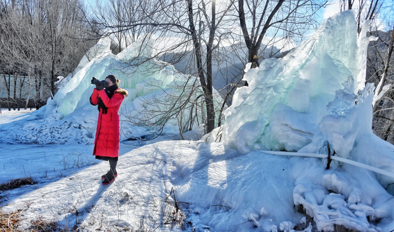1月14日,游客在玉渡山拍攝山泉冰瀑。 近日,眾多游客來到北京市延慶區玉渡山冰雪世界體驗冰雪游樂活動。延慶區玉渡山位于燕山山脈海坨山腳下,玉渡山風景區利用氣溫低、高山降雪和不凍山泉等自然優勢打造了人工冰瀑、冰川等冰雪景觀,以及高山滑冰滑雪、雪地爬犁、雪圈等冰雪游客項目,每天吸引各地游客超過1000人次。 新華社記者 李欣 攝 -