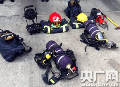 超過36公斤重的消防防護裝備 央廣網記者高藝寧攝