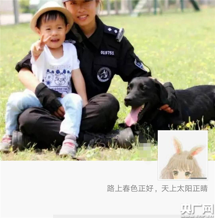 轉眼間,“兩個孩子”都6歲了,隊里的“孩子”已經成為一條經驗豐富的警犬,家里的孩子也要上小學。在張靈朋友圈封面上,記者看到一張她穿著鐵警制服和兒子還有小黑一起照的合照,“我很喜歡這張照片,這也是我生活的全部重心。”她告訴記者。