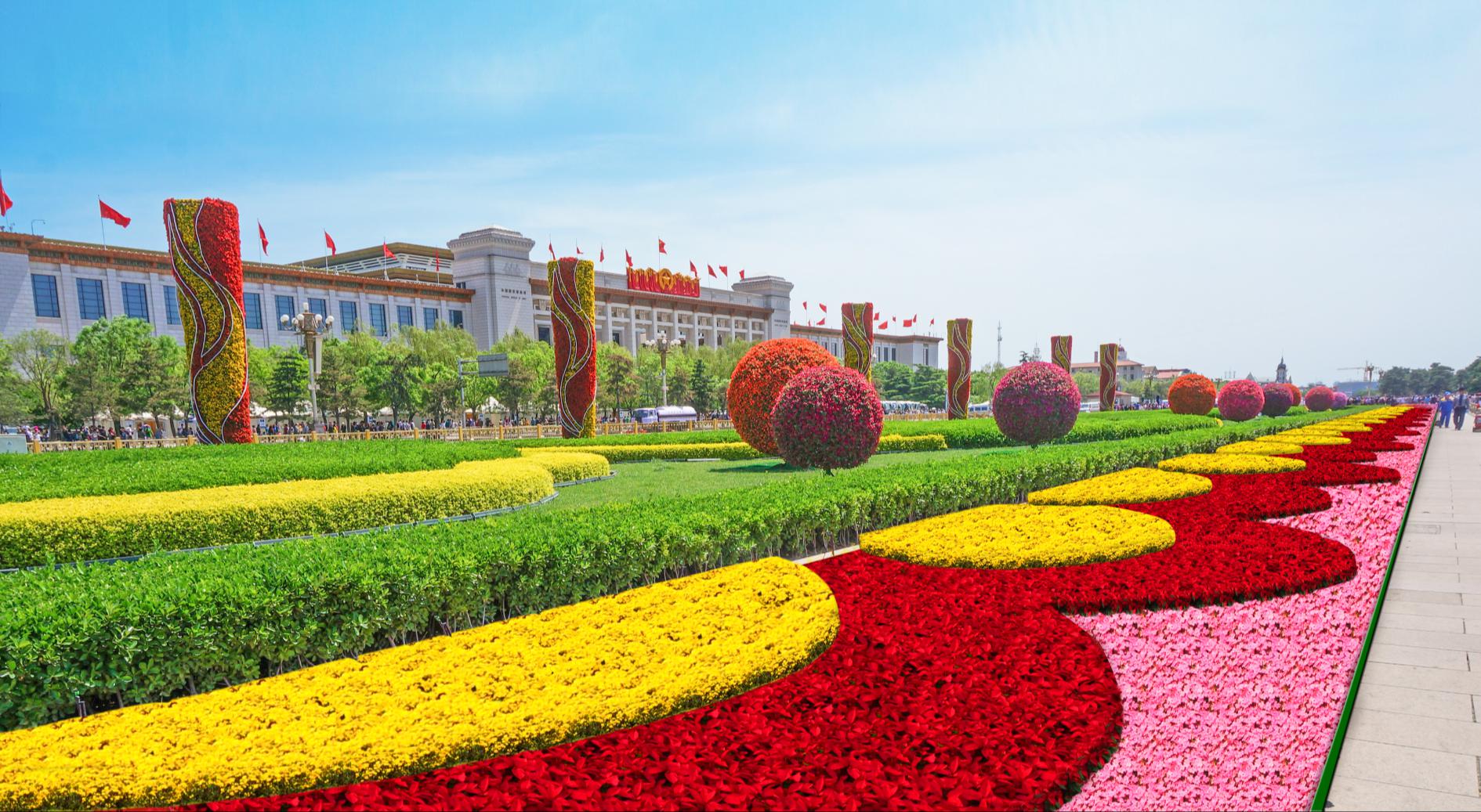 天安門廣場中心花壇“祝福祖國” (北京市園林綠化局 供圖)