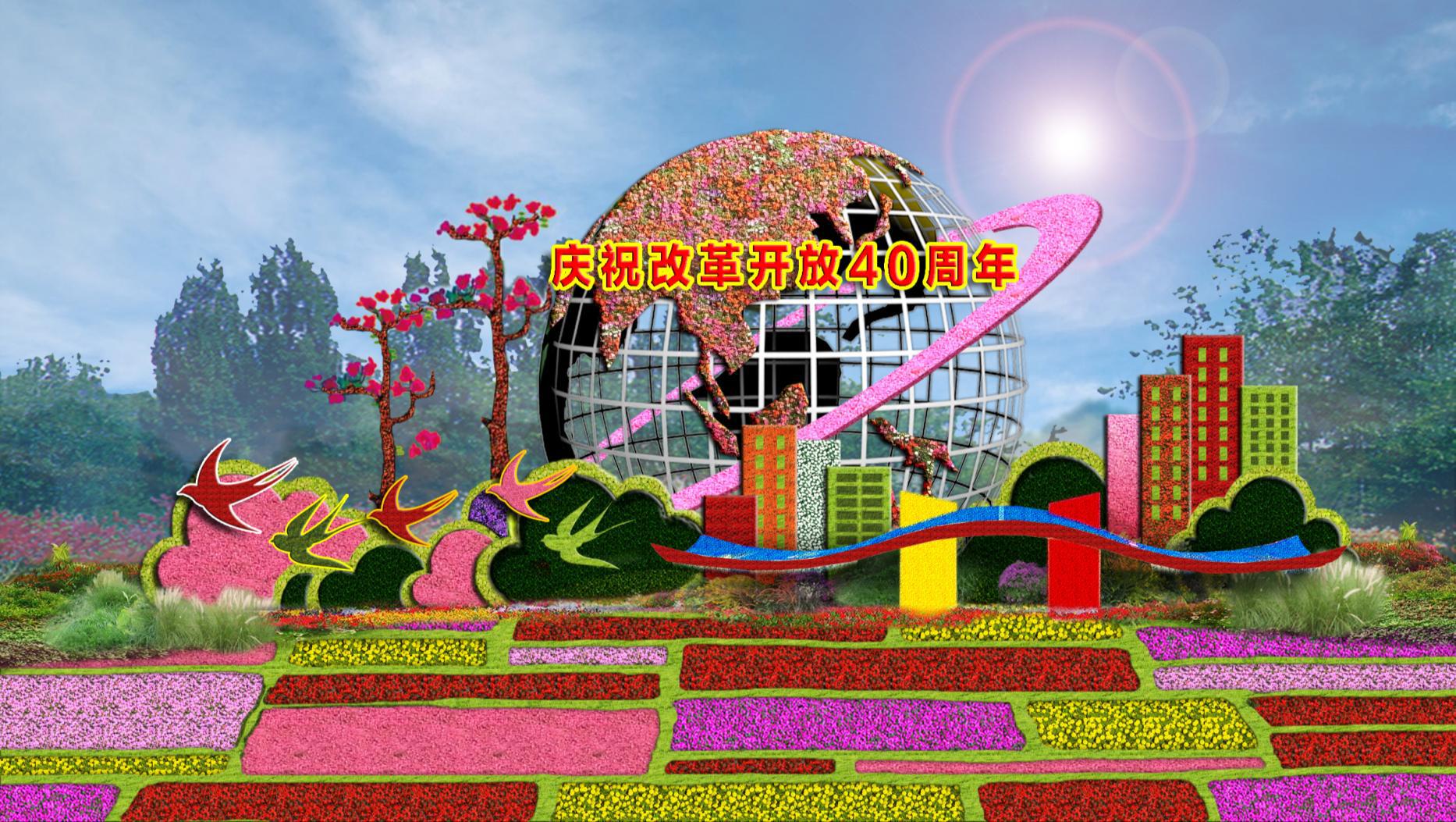 建國門西北角花壇的主題為“春的華章”,寓意我們要以慶祝改革開放40周年為契機,逢山開路,遇水架橋,將改革進行到底。