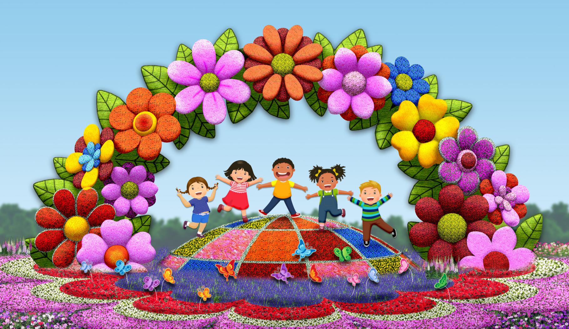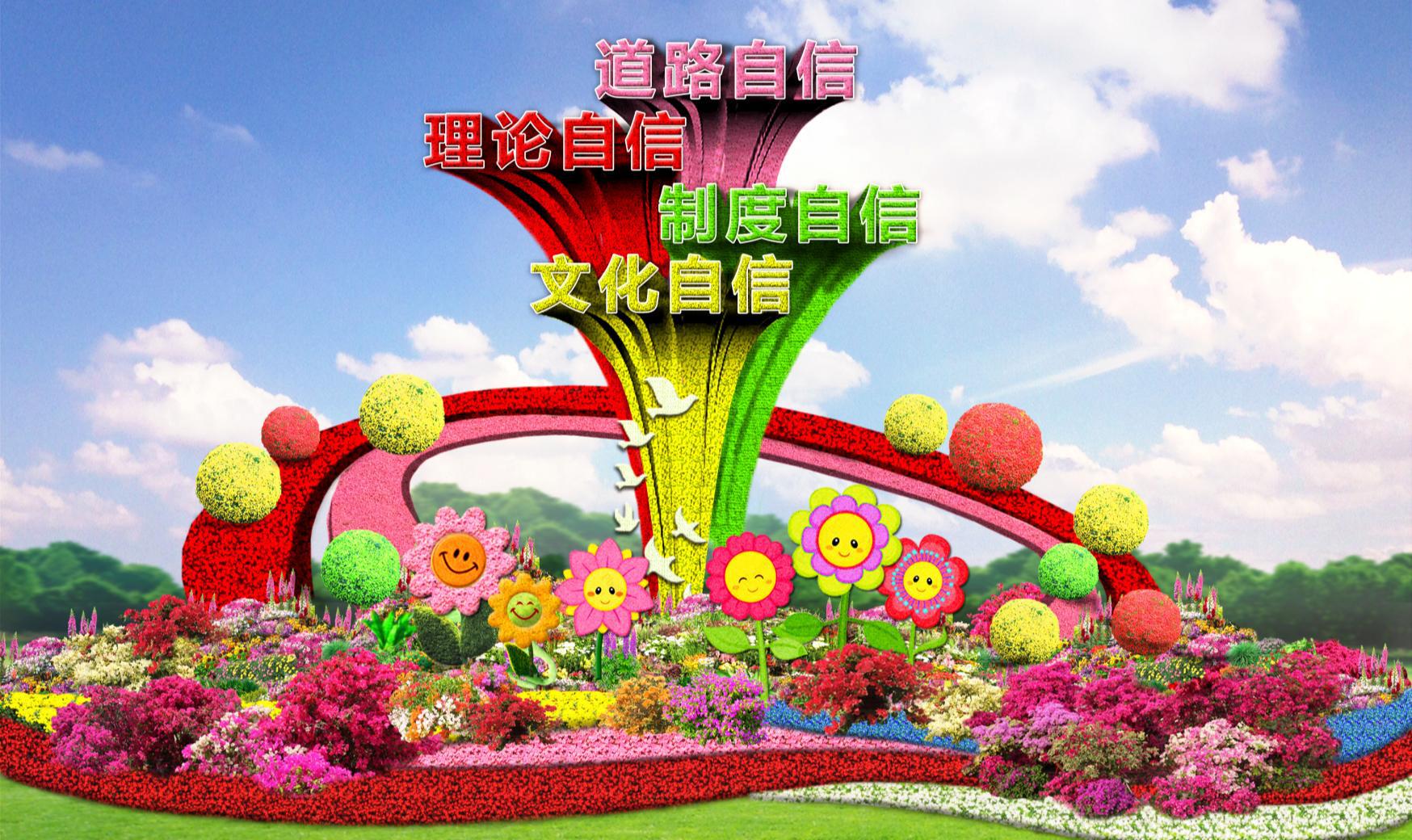 “祝福祖國”大花籃寓意團結奮進