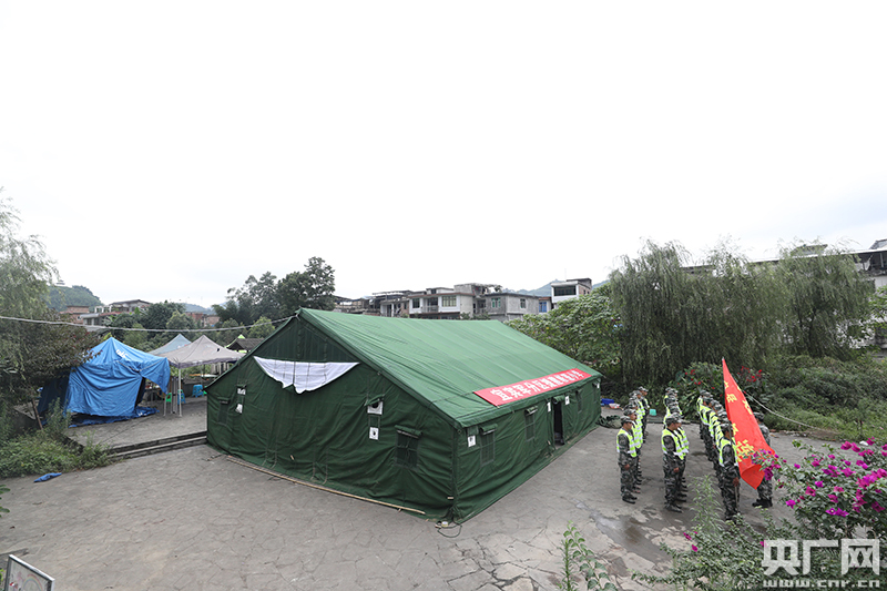 央廣網宜賓6月20日消息(記者韓靖 陳銳海)今天(20日)是四川長寧6.0級地震發生后第三天。下午,記者在震中雙河鎮發現,震后第一所“帳篷小學”的主體結構已完成,添加課桌椅后,21日9時即可開學復課。(央廣網記者 韓靖攝)