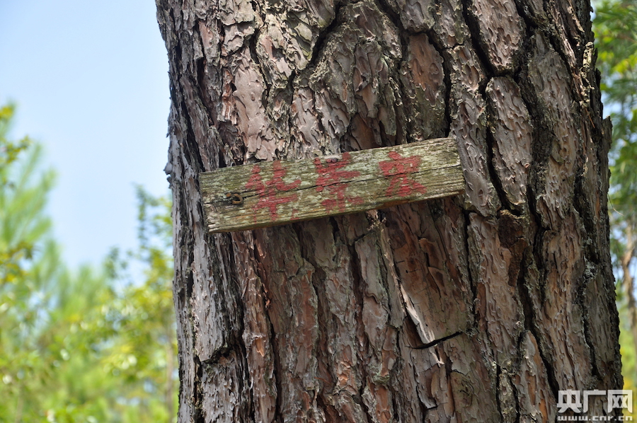 掛有烈士姓名木牌的青松,曾經的小樹已長成參天大樹(央廣網記者 王子衿 攝)