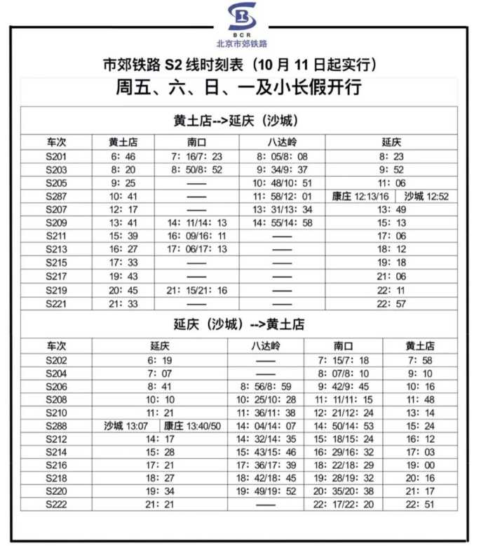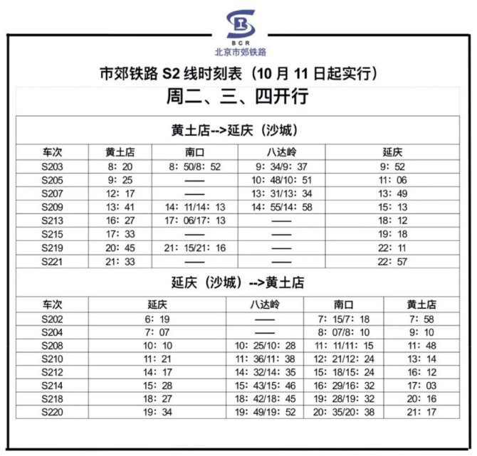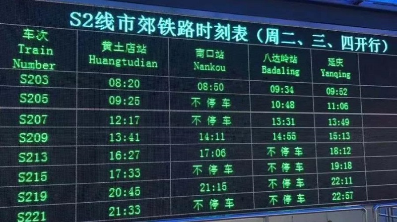 S2線時刻表(央廣網發 北京鐵路供圖)