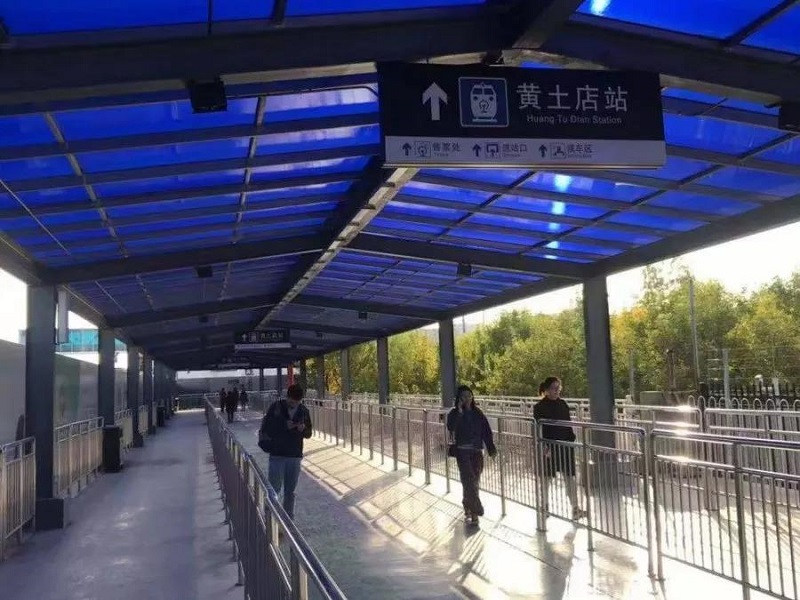 北京市郊鐵路S2線(延慶線)和S5線(懷密線)市內始發站均為黃土店站。黃土店站緊鄰地鐵13號線、8號線霍營站,乘客從霍營地鐵站出站后,沿著柵欄和指示牌就可輕松到達火車站。