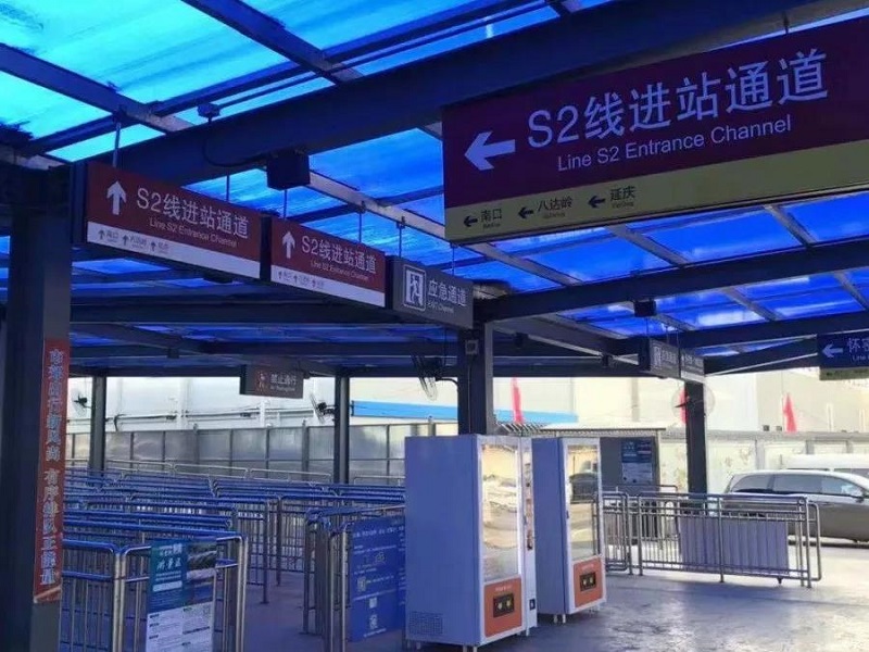 按照車站里的標識指引,可快速購票乘車。想去八達嶺、世園會的乘客就可乘坐S2線,如果是想去雁棲湖、紅螺寺、慕田峪或是古北水鎮,可乘坐S5線。為了方便旅客乘車,黃土店站內的大屏幕全天都會播放車次信息。