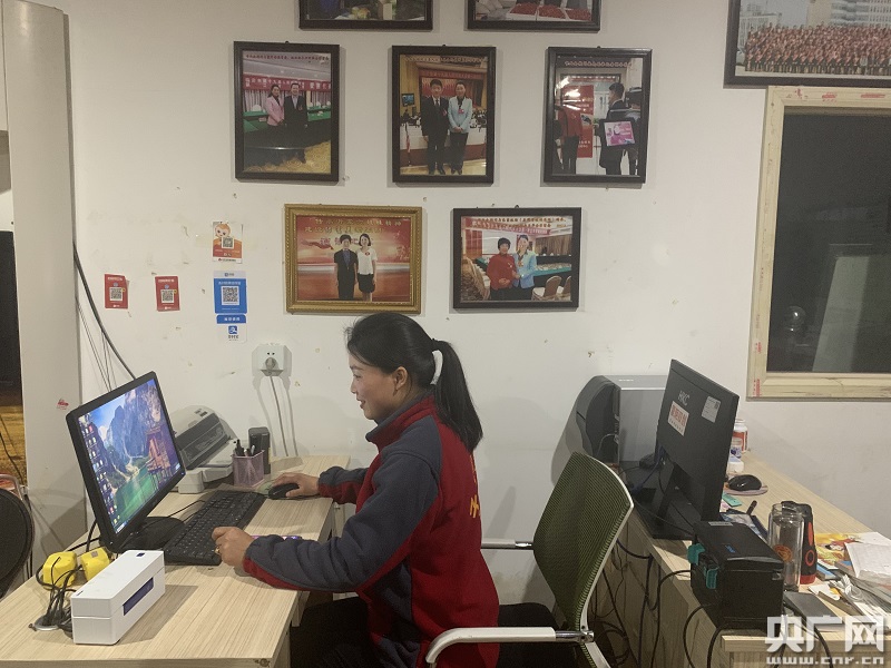 牛慶花在辦公室打理自家的淘寶店鋪(央廣網記者 孫冰潔 攝)