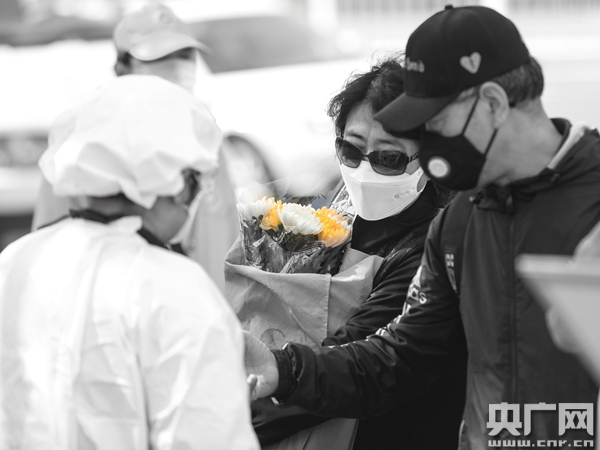 八寶山人民公墓為前來祭掃的市民提供免費鮮花(央廣網記者 張佳琪 攝)
