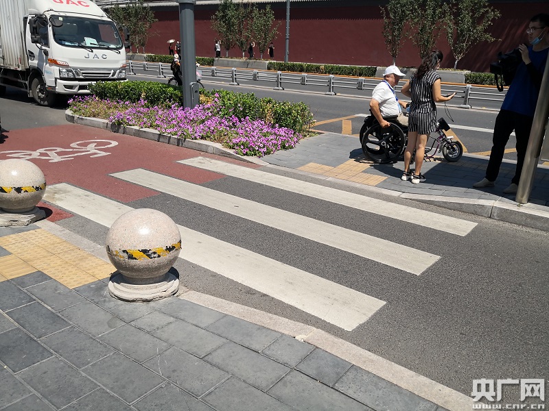 雍和宮大街公交站附近升級改造的緣石坡道(央廣網記者 王晶 攝)