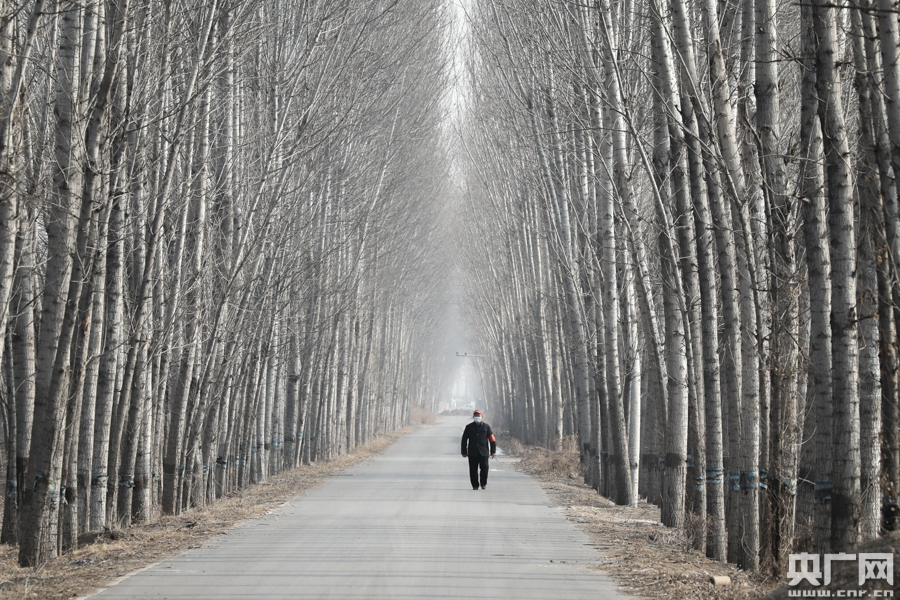 防疫人員楊福祿正在田家營村西南卡口執勤(央廣網記者 韓靖 攝)