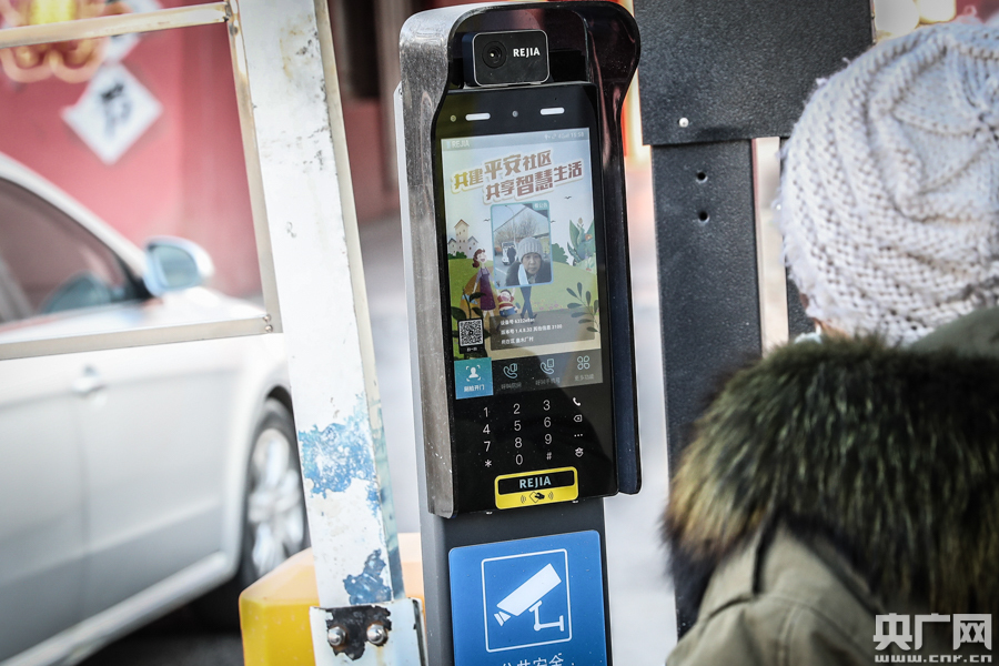 村民通過人臉識別系統“刷臉”進村(央廣網記者 韓靖 攝)