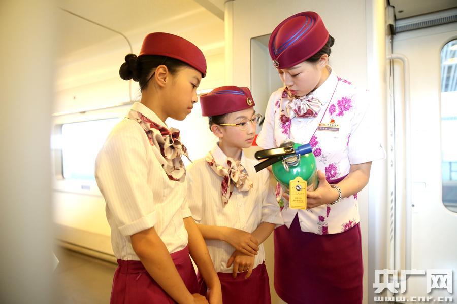 “迷你”列車長在“動妹”的指導下進行立崗 (央廣網發 龔萱 攝) -
