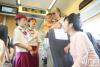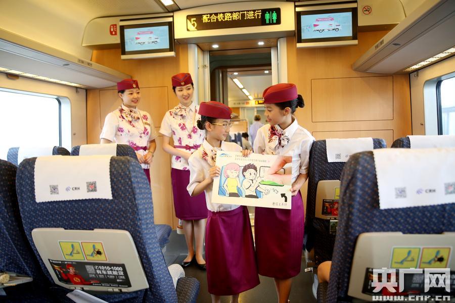 5月31日,在青城山開往犀浦的C6108次動車組列車上,“動妹”正在為“迷你”列車長整理儀容(央廣網發 龔萱 攝) 央廣網成都6月1日消息(記者韓民權 通訊員龔萱攝)5月31日,在青城山開往犀浦的C6108次動車組列車上,來自青城山七一小學16名小學生,在成都鐵路局成都客運段“動妹”的指導下,開始了自己的動車體驗之旅,在成灌動車組列車上度過一個難忘的兒童節。 早在2009年,青城山七一小學的孩子們就與成都客運段的“動妹”結下了特殊的緣分。青城山七一小學是2008年汶川地震后特殊黨費援建的災后重建項目,2009年成灌線的開通,架起了“動妹”與孩子們相識的橋梁。 為了給孩子更多的關愛,“動妹”們自發為孩子們捐贈了圖書、文具等禮品,并先后到學校與孩子們進行聯誼,不少孩子與“動妹”建立了書信聯系。 今年的兒童節,“動妹”們提前與學校老師聯系,想給孩子們留下一個難忘的節日回憶。5月31日這天,“動妹”們來到七一小學操場上與孩子們開展聯歡活動。她們帶著甜美的笑容,以優美的舞姿向孩子們表演了將服務禮儀、形象展示和微笑融合的“微笑操”。一曲結束后,“動妹” 佘渝艷向孩子們講解了高鐵乘車知識和乘務工作流程,并邀請上臺體驗服務禮儀的魅力。孩子們也為動妹們準備拉丁舞、芭蕾、歌曲《成都》等表演。 熱鬧歡樂的聯歡活動結束后,來自各班級的16名學生代表在“動妹”的帶領下,登上了青城山開往犀清的C6108次動車組列車,開始了自己的乘務工作體驗。 始發通告、乘車安全宣傳、終到遺失物品清理……在動妹們的指導下,“迷你”列車長完成了動車乘務工作的體驗之旅,度過了一個難忘的節日。 -