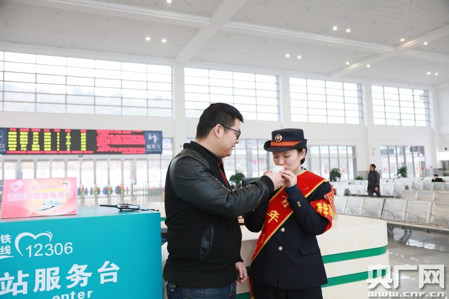 春運路上的情人節(李勇 程禮松 攝) 央廣網重慶2月14日消息(記者劉湛 通訊員李勇 程禮松)正月十七,恰逢情人節,處處都彌漫著甜蜜的氛圍,春運最后一輪客流高峰的持續卻阻隔了不少鐵路職工在今天相遇。但他們依然通過手機、快遞傳情或準備特別禮物,演繹了各種驚喜,將浪漫進行到底,化作奮戰春運的無盡動力。管轄襄渝、蘭渝、高南、滬蓉線上12個客運辦理站的重慶北車務段一線客運職工大多是近3年分配而來的青工,他們或在熱戀中,或是新婚燕爾…… 愛灑老區春運路 “你看你都瘦了一圈了,一定要按時吃飯,有空了就多休息休息。……”2月14日,成都鐵路局重慶北車務段南部站售票廳里,客運主任李青的愛人郭航志為她送來了情人節禮物,一盒新鮮的草莓和一支玫瑰花。 和李青一樣,郭航志也是一名鐵路客運工作者,他在與李青相鄰的南充北站擔任客運值班員。2012年,郭航志與剛畢業入路不久的李青相識在“三江明珠”合川站。2014年,二人曾相約廣安南站獻身“小平故里”高南線開通初期的建設,并在那里許下誓言結為連理。2015年,小夫妻又共同踏上了精準扶貧線蘭渝鐵路的墾荒征程。 四年多的歷練,李青已經從青澀的小女生成長為了南部站客運主任,郭航志也不甘落后擔當起了南充北站客運值班員。婚后,二人輾轉高南線、蘭渝線,一心撲在新線建設和客運工作上。結婚三年來,二人的婚禮一推再推,裝好的新房二人都沒有一道去看過。 “明天,我準備回趟老家,把我媽接來,一來她可以先把新房子收拾收拾,二來我媽身體不好,離近點也好有個照應。今年,無論如何都要把我們的婚禮辦了。一直這么虧欠你,我的心里很不好受!”郭航志看著略顯單薄的李青說。 緣起鐵路情更濃 “起初我們都不認識對方,是2014年在一次團委組織的聯誼活動上認識的,我們都來自黑龍江鶴崗,他人很好,誠實、可靠、有擔當、責任心強……”手里拿著自己最愛吃的巧克力,馮麗文談起自己和丈夫的相識、相知、相戀過程,一臉幸福。馮麗文口中的“他”正是自己的丈夫趙陽,兩人均為成都鐵路局重慶北車務段潼南車站職工,馮麗文是客運員,趙陽擔任助理值班員。 緣起鐵路。原來,馮麗文和趙陽的家鄉都在千里之外的黑龍江省鶴崗市,且只有一街之隔,但兩人起初并不認識,通過一次聯誼活動認識之后兩人的感情“一發不可收拾”。從鶴崗到潼南,從鄰居變同事,工作上互相幫助,生活中彼此關心,一個溫暖的眼神,一句貼心的問候,這一切讓身在異鄉的兩個人漸漸篤定對方就是彼此心中的那個人。 奮戰春運。2015年9月,馮麗文和趙陽為他們的愛情烙下了鮮紅的印章、領證結婚。今年是二人婚后的第二個春運,但他們還是與去年一樣,放棄了回家,選擇和車站同事們一起堅守春運。由于所在的崗位不同且都是倒班制,雖然同在一個車站,但二人卻是聚少離多,站臺、食堂、樓道便是他們“偶遇”的最佳地方。“今年春運我是‘幸運’的,因為大年三十的時候我們兩是一起過的,我們一起吃了自己做的年夜飯,還一起給家里的爸媽視頻拜年了呢!”問起年三十怎么過的,馮麗文對記者說到。 2月14日,春運第33天,趙陽當上夜班,馮麗文輪休,整天忙于客運工作的馮麗文早就忘了這是個情人節,但是細心的趙陽卻一直記得,這是兩人在一起“過”的第一個情人節。就在趙陽準備出門上班,馮麗文為丈夫整理領帶,準備出門上班的時候,趙陽一手妻子緊緊抱在懷中,一手從身后拿出早已準備好的妻子最愛吃的巧克力,這個情人節他們真正過了。 “雖然她總說不怪我,但我也想給她一個‘情人節’。雖然我們現在還沒有自己的房子,但有她在的地方就是家。”上班路上,趙陽邊下樓梯邊告訴記者。