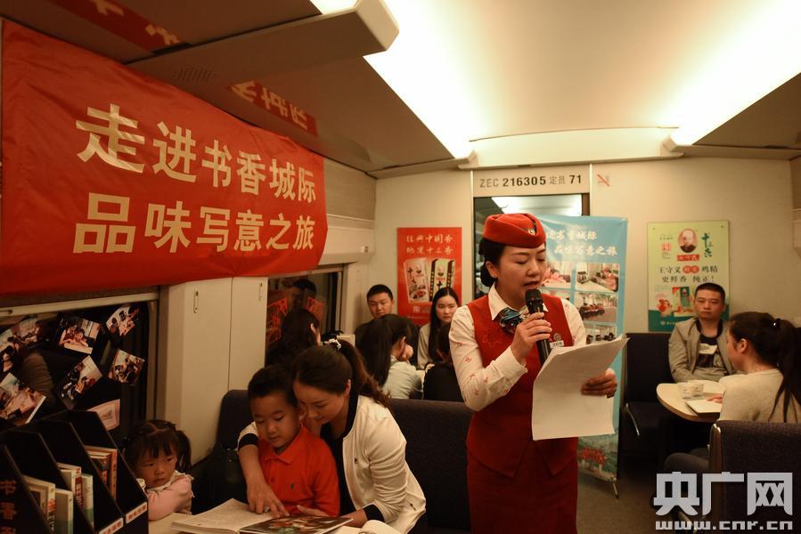 武漢客運(yùn)段:列車(chē)書(shū)香分享行進(jìn)之美 央廣網(wǎng)武漢4月25日消息(記者張毛清 通訊員易娜 蘇杭)近日,武漢鐵路局武漢客運(yùn)段在流動(dòng)的類(lèi)車(chē)上開(kāi)展了“走進(jìn)書(shū)香城際 品味寫(xiě)意之旅”為主題的讀書(shū)活動(dòng)。武漢客運(yùn)段負(fù)責(zé)人表示,在流動(dòng)的車(chē)廂里與廣大旅客分享閱讀之美的讀書(shū)活動(dòng)將會(huì)常態(tài)化、規(guī)模化。 -
