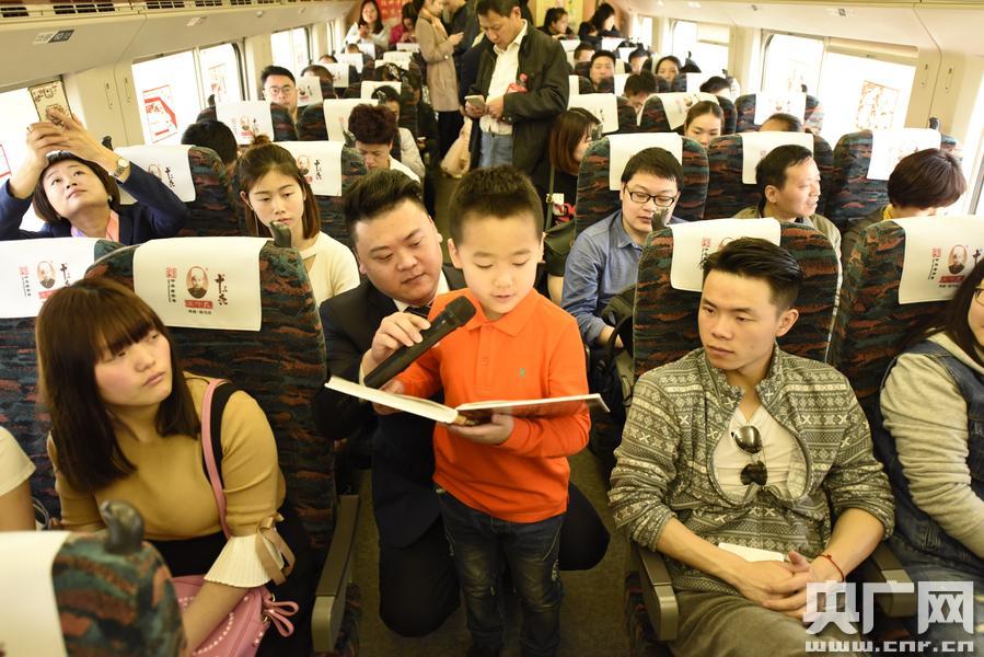 武漢客運(yùn)段:列車(chē)書(shū)香分享行進(jìn)之美 “我想把汪國(guó)真的《感謝》獻(xiàn)給我的妻子,感謝她為我孕育我們的下一代,感謝她為家庭的辛苦付出。讓我怎樣感謝你,當(dāng)我走向你的時(shí)候……”來(lái)自河南的曹先生動(dòng)情地朗誦到。他表示,非常開(kāi)心能參與到書(shū)香城際讀書(shū)活動(dòng)中。這次的出行經(jīng)歷讓他印象深刻,他認(rèn)為閱讀能夠真實(shí)地抒發(fā)情感,增進(jìn)人與人之間的心靈溝通,是一件非常有意義的事情。活動(dòng)現(xiàn)場(chǎng)還有幾名小旅客主動(dòng)要求朗讀,3歲的葉若妍小朋友和8歲的袁浩誠(chéng)小朋友分別朗讀了詩(shī)歌《黃鶴樓》和故事《桃園結(jié)義》,贏得了周?chē)每偷年囮囌坡! ? 旅客陳欣表示,自己從事文案工作,雖然平時(shí)非常忙,但一直很重視閱讀,她認(rèn)為倡導(dǎo)閱讀能夠陶冶情操、緩解壓力,豐富人的內(nèi)涵。 -