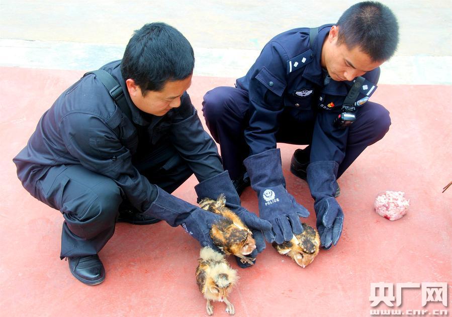 被救助的國家二級保護動物倉鸮(央廣網發 郭麗娟 攝) 央廣網普洱1月5日消息(記者李騰飛 通訊員郭麗娟 常國軒)1月2日,云南省寧洱縣警民聯手成功救助了3只國家二級保護動物小幼鸮。 當天上午10時左右,寧洱縣森林公安局接到寧洱縣同心鎮林業服務中心送來的三只被雨水淋透的“猴面鷹”。2日凌晨,同心鎮那柯里的一位李姓村民到農田干活時,途經同心治超點公路邊時,聽見路邊排水溝里發出呼呼的響聲。他尋聲去找,發現水溝里窩著三個貓頭鷹在瑟瑟發抖。李大哥找來紙箱把它們裝好,準備拿回家救助,恰巧途中遇到了正在林區巡查的林業服務中心工作人員,后轉交至森林公安。 被送到到縣森林公安局時,三個小家伙躲在紙箱里非常虛弱,體型較小的一只已經奄奄一息,另一只的喙也受了傷。民警們立即用干毛巾將淋濕的“猴面鷹”擦干,使用消毒水對傷口進行清創,并買來了鮮肉和葡萄糖水一點一點的給它們喂食。 經過民警一天的精心照顧,三個小家伙精神狀態有所好轉,慢慢地開始自主進食。 經專業鑒定,三只鳥學名叫倉鸮,當地人又稱猴面鷹、猴頭鷹等,是夜行猛禽,屬于國家二級保護動物。 鑒于這三只倉鸮均為幼鳥,且森林公安不具備飼養條件,寧洱縣森林公安局于1月3日上午聯系并將三只倉鸮送往普洱市野生動物收容救助中心進行進一步救助。