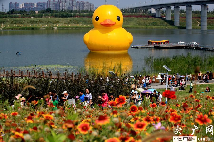 央廣網(wǎng)北京9月8日消息(記者李文蕊)秋日的北京又到了旅游的黃金季節(jié)。大黃鴨亮相園博湖的首個周末游客明顯增多,開園僅1小時,1.1萬人涌入園博園。截止下午17點,超過5萬人來到了園博園,夜場還將吸引游客從四面八方趕來源源不斷地來到園博園。