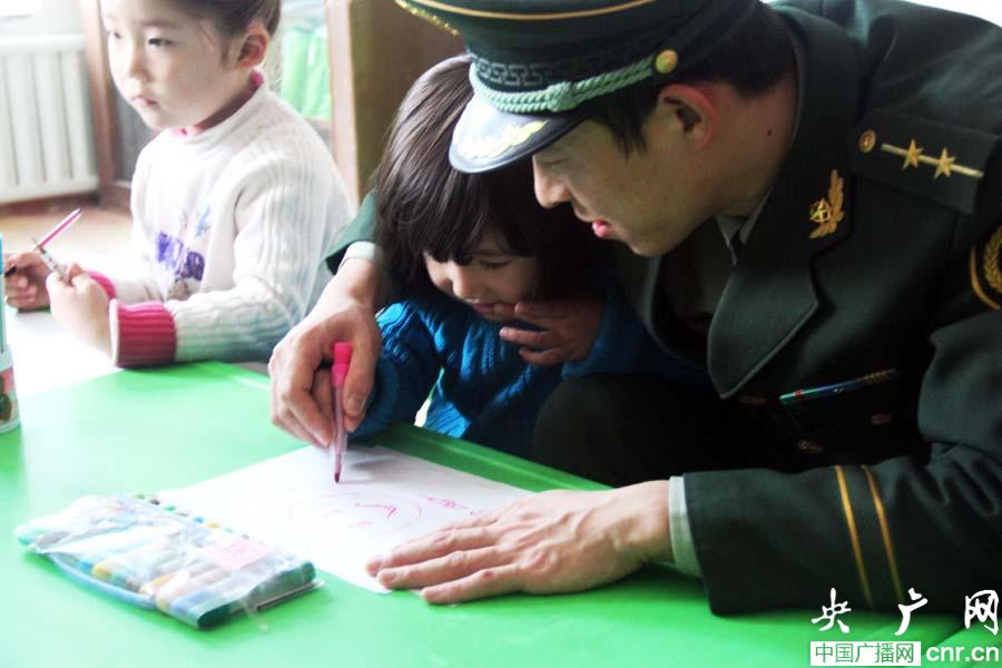 新疆邊防警官與轄區(qū)幼兒園小朋友共度“世界問候日”(圖)